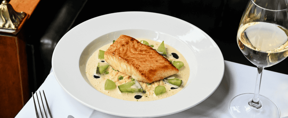 Kjøkkensjefene Claes Skog og Eric Addison Doepke, og deres team lager mat av sesongens beste råvarer. Med den ene foten i det klassiske franske kjøkkenet og den andre i et kreativt kjøkken uten regler. En god blanding av moderne og klassiske retter - fulle av smak. Bon appétit!