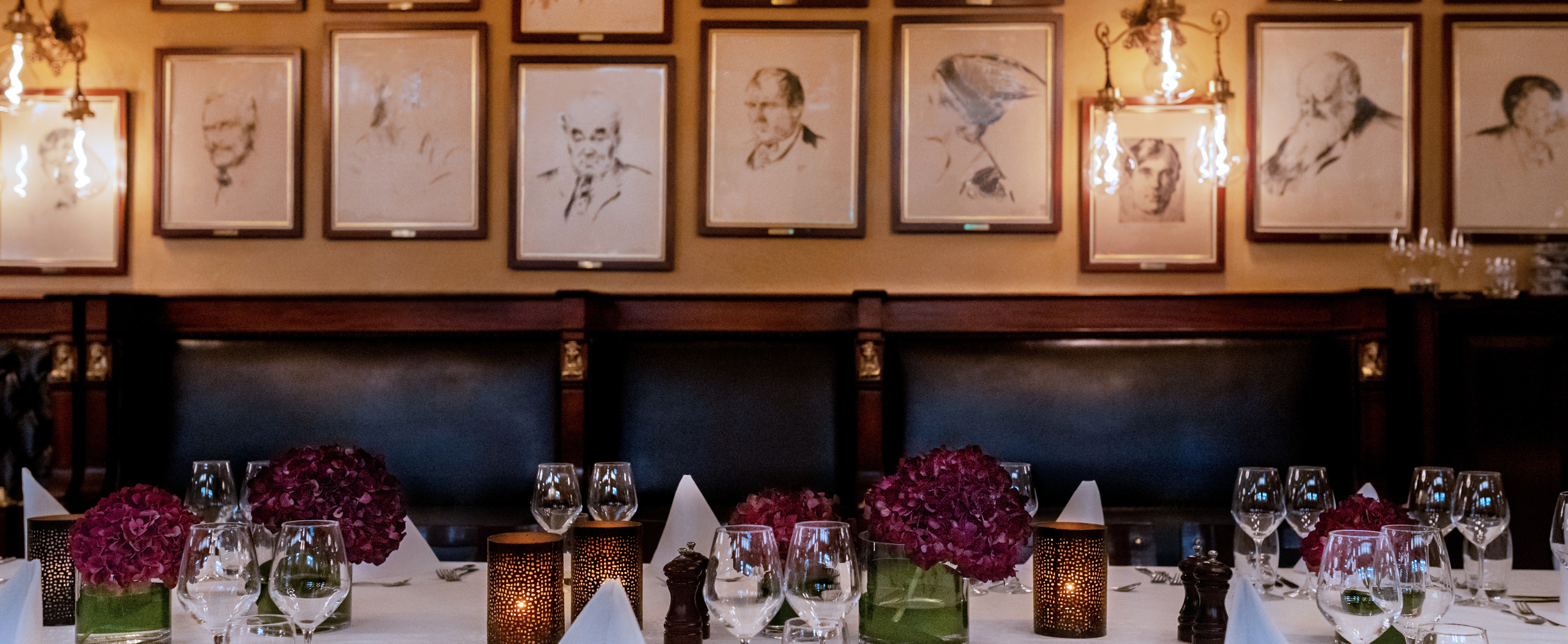 De første portrettene kom opp på veggen i 1924 og i dag er det en samling av 87 portretter. Kunstnere og kulturpersonligheter har blitt tegnet og fått sin plass på veggene i Theatercaféen. De er dermed blitt en viktig del av en tradisjon i over 100 år.
